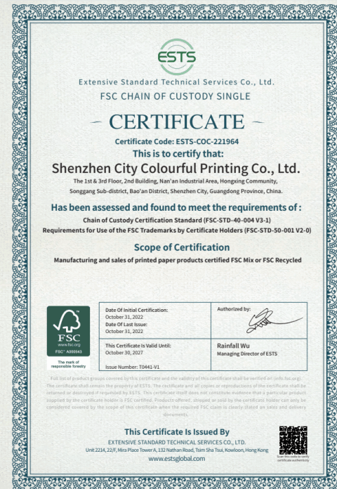 祝賀深圳市好晶彩印刷有限公司2022年快速通過FSC認證